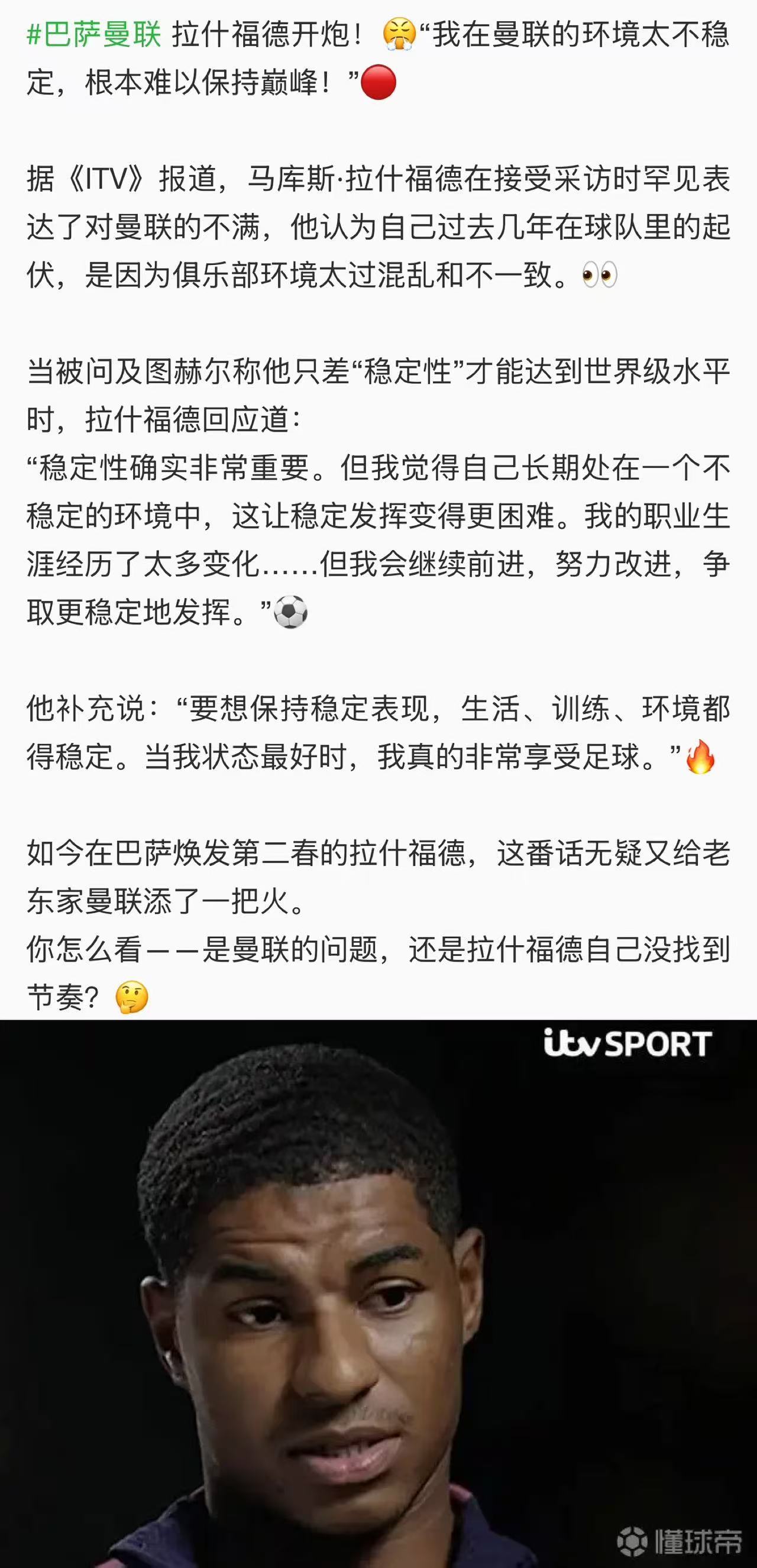 惊爆!跳出鱼缸的鱼儿竟吐露惊人真相?继安东尼大胆发声,直指曼联对其缺乏应有的尊重后,前太子拉什福德也勇敢站出,坦言自己状态波动,皆因俱乐部内部环境太过纷扰复杂!